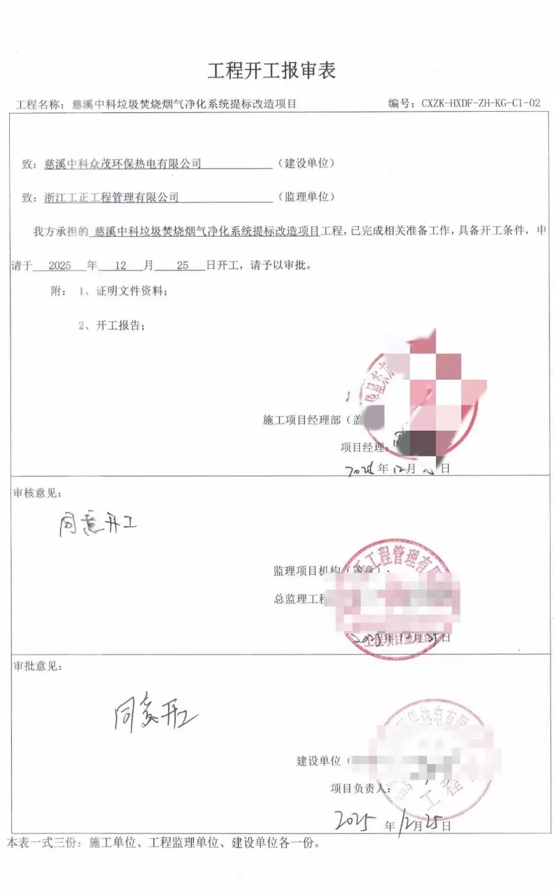 我公司承建的浙江省寧波市慈溪生活垃圾焚燒發(fā)電項(xiàng)目煙氣凈化提標(biāo)改造工程于2025年12月25日開工建設(shè)。 HEPT has started construction on FGC system upgrading for Cixi Ningbo MSW incineration power plant since 25th. Dec 2025.